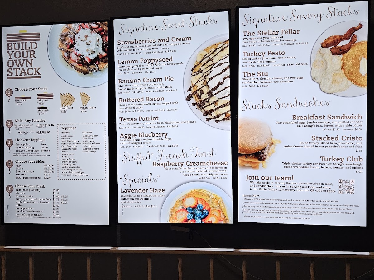 Welcome to Stacked, a delightful culinary gem nestled in Logan, Utah. This charming eatery offers a mouthwatering menu featuring standout dishes like their Raspberry Stuffed French Toast, crafted with locally sourced brioche from Stong's Bakery. Encased in fluffy perfection, this treat is filled with rich raspberry cream cheese and topped with whipped cream for a sweet indulgence.